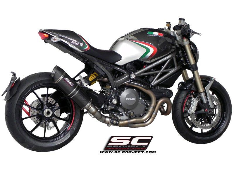 Ljuddämparen Oval är vid det här laget en institution i SC-Projects avgassortiment med ett klassiskt och tidlöst utseende. Dess elliptiska och kompakta design har utvecklats för att anpassa sig till linjerna i Din Ducati Monster 1100 EVO, vilket ger den karaktär och elegans. Den omisskännliga signaturen hos SC-Project är valet av material och några relevanta tekniska lösningar: passsvets med TIG- teknik och skärbussningar bearbetade från CNC- maskiner. Den yttre delen kan levereras både i titan och kol med ändlocket kolfibertwill . Ljuddämparen är utrustad med DB-killer och dess specifika blocksystem. Ljuddämparen är homologerad för vägbruk . I satsen ingår länkröret och den rostfria klämman med antivibrationsgummi för montering av ljuddämparen.
